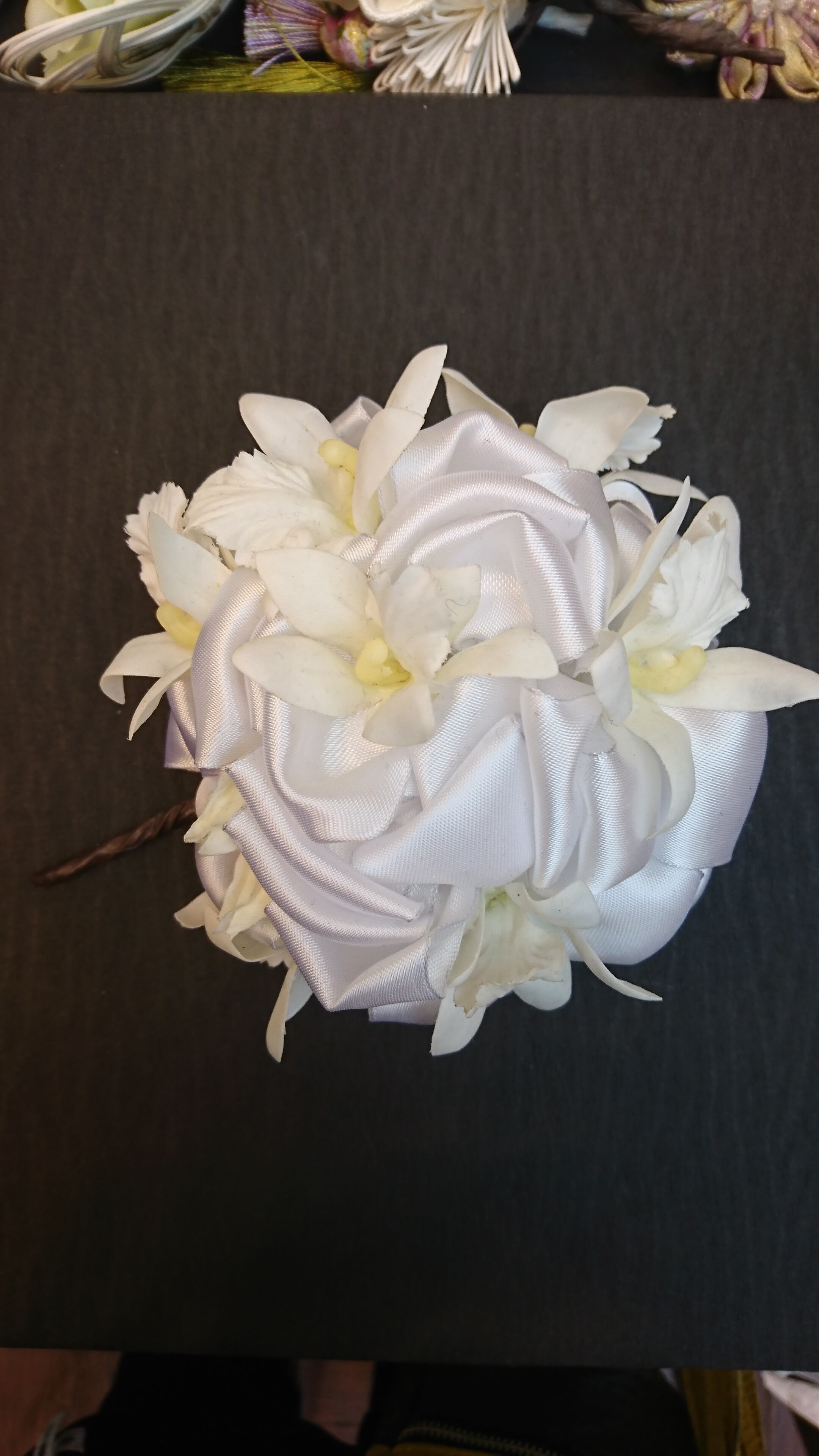 白の小さなボウ(蝶々)をたくさん集めて大輪のバラを作りました。