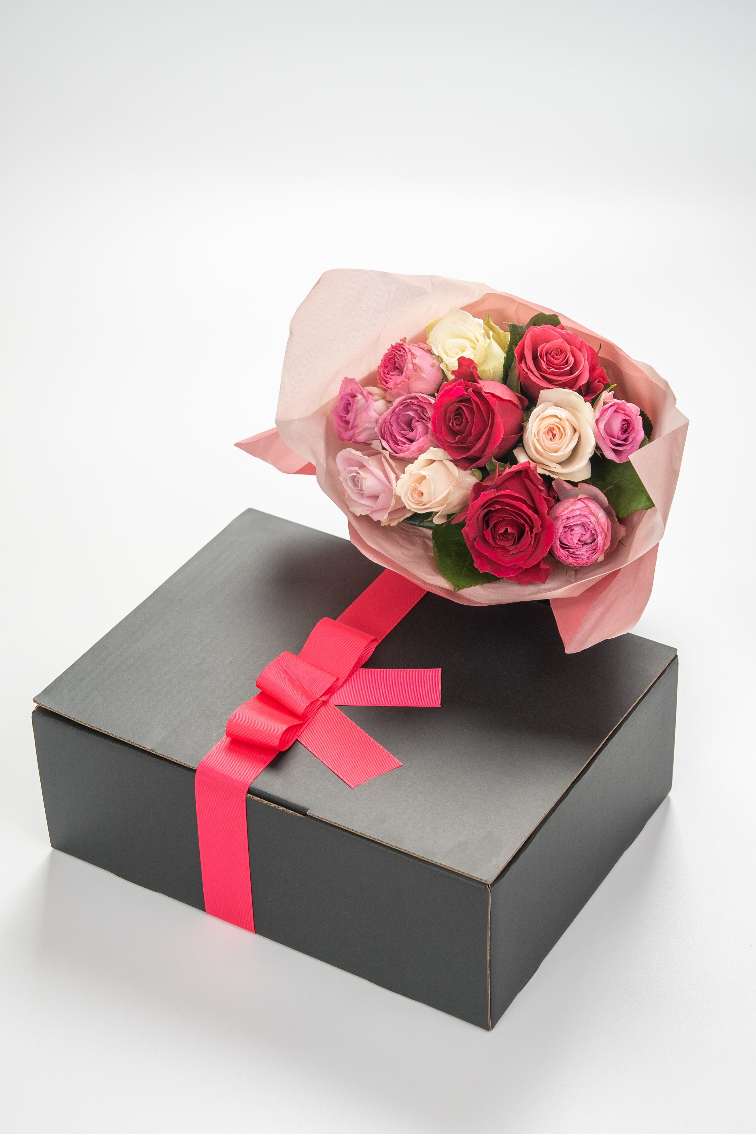ハイクォリティーローズを集めて花束にしてボックスに入れてお届け致します。